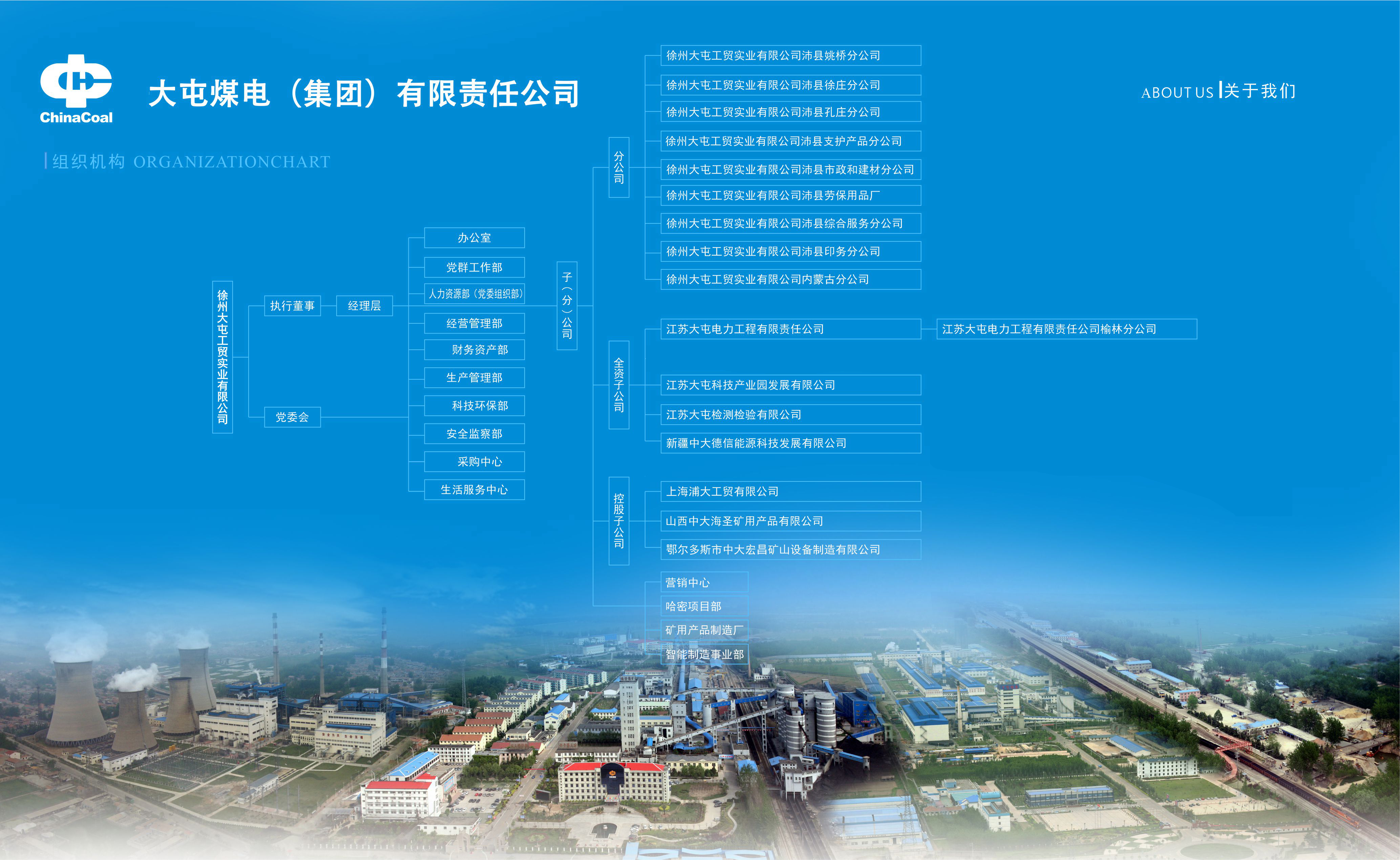 徐州大屯工貿實業有限公司(以下簡稱“實業公司”)隸屬于中國中煤能源集團有限責任公司(以下簡稱“中國中煤”),是大屯煤電(集團)有限責任公司(以下簡稱“大屯公司”)的全資子公司,其前身是成立于2006年11月的徐州大屯工貿實業公司,2019年11月,改制為徐州大屯工貿實業有限公司?,F有12家分公司和8家子公司,注冊資本2.2億元。截至2024年年底,實業公司資產總額為53,356.93萬元,從業人員474人,其中具有各類職稱的技術人員157人,中級以上職稱的技術人員125人。
